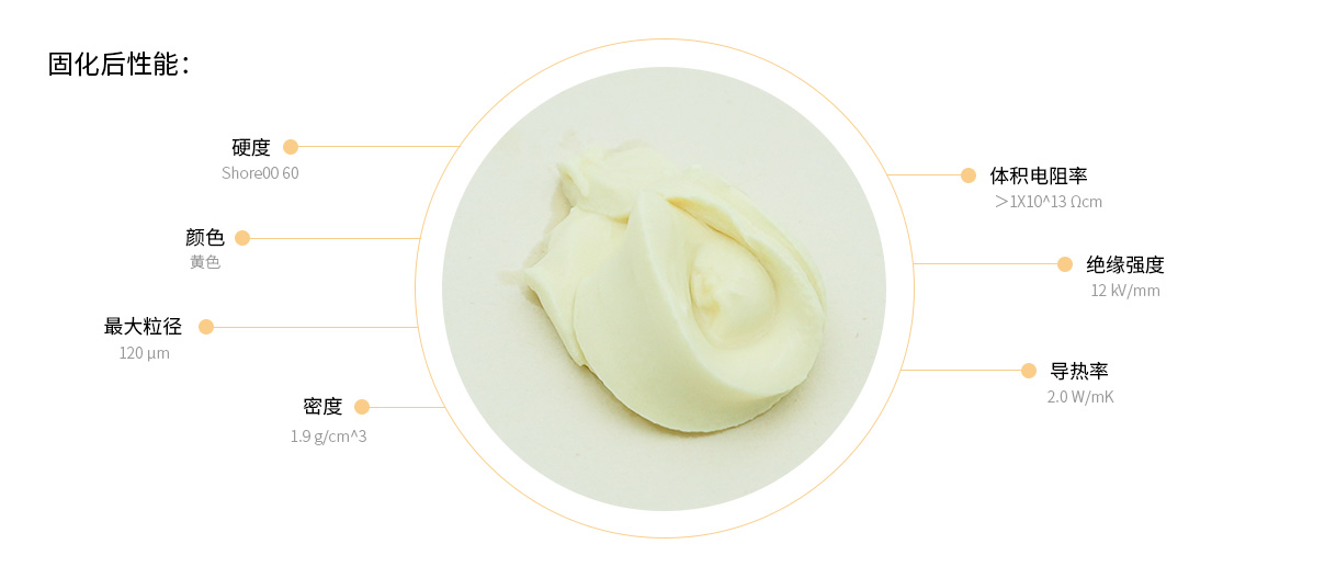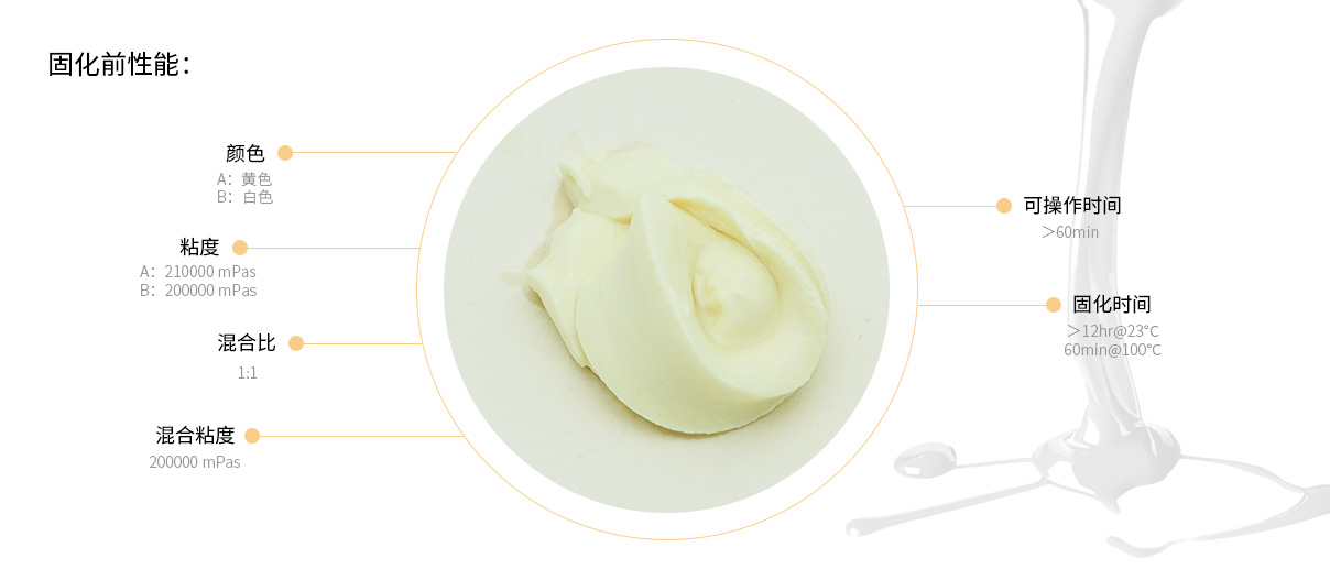 有機硅導(dǎo)熱填縫劑; 低應(yīng)力,柔軟且表面自粘; 雙組份,室溫固化; 低密度;